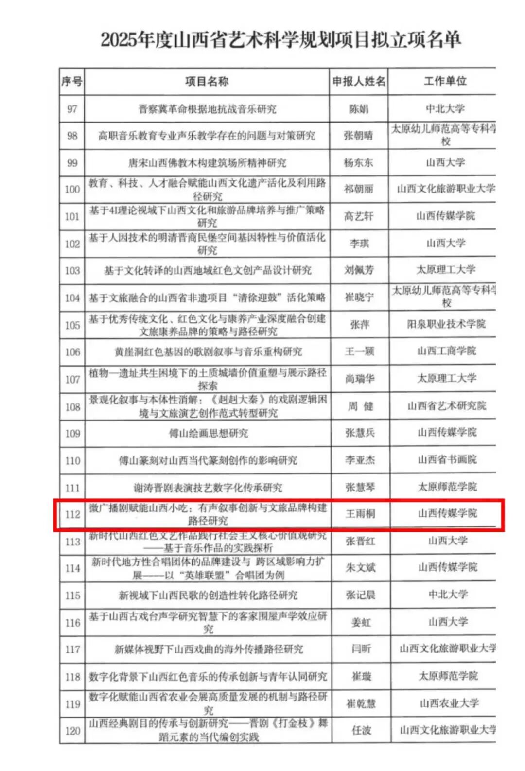 乔羽以《人工智能技术赋能山西本土影视产业融合创新研究》入选,项目聚焦AI与影视产业的深度融合,将为山西本土影视的数字化升级与产业创新提供新路径。王雨桐凭借《微广播剧赋能山西小吃:有声叙事创新与文旅品牌构建路径研究》立项,项目以“声音+美食”的跨界思路,探索山西文旅品牌的年轻化传播新范式。
